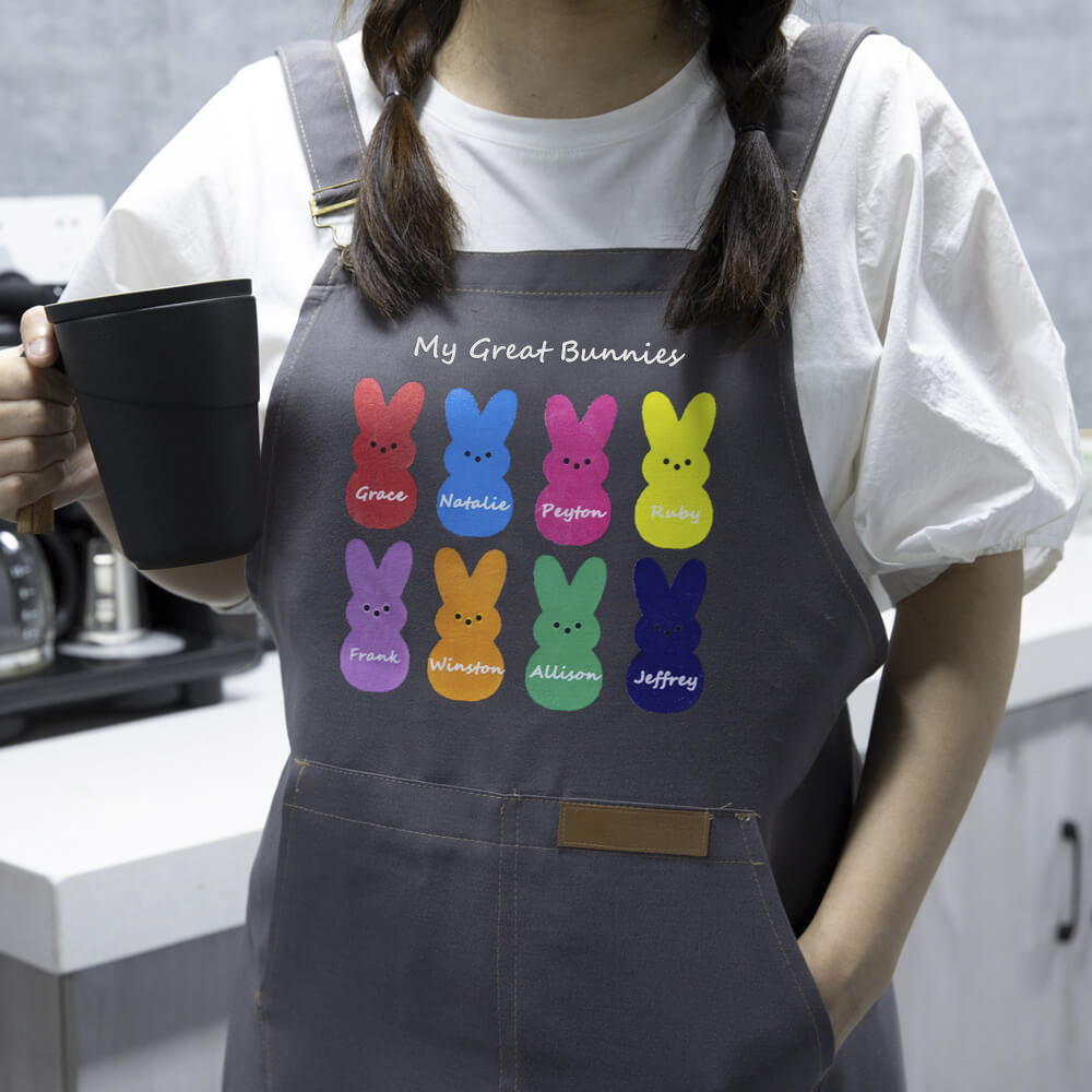 This pinafore can be customized with 1-10 bunnies. You can choose the different colors to indicate your cute bunnies, and customize each bunny's name.