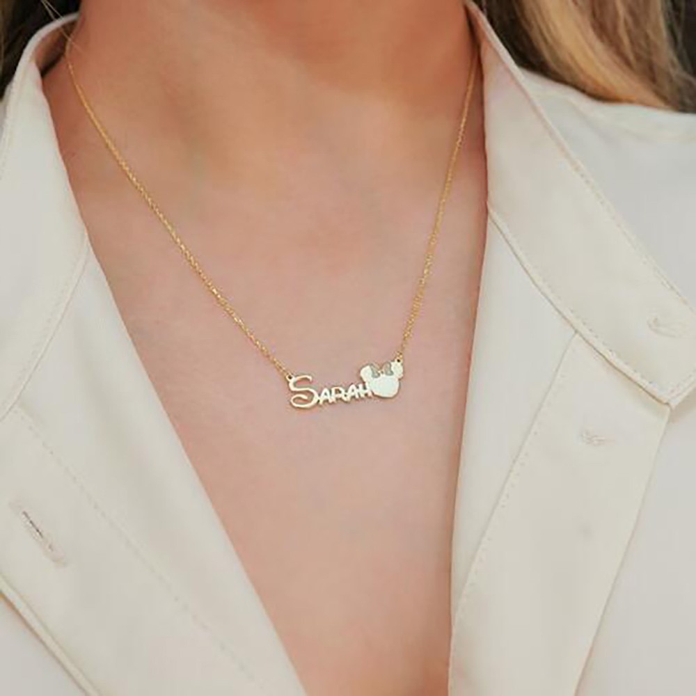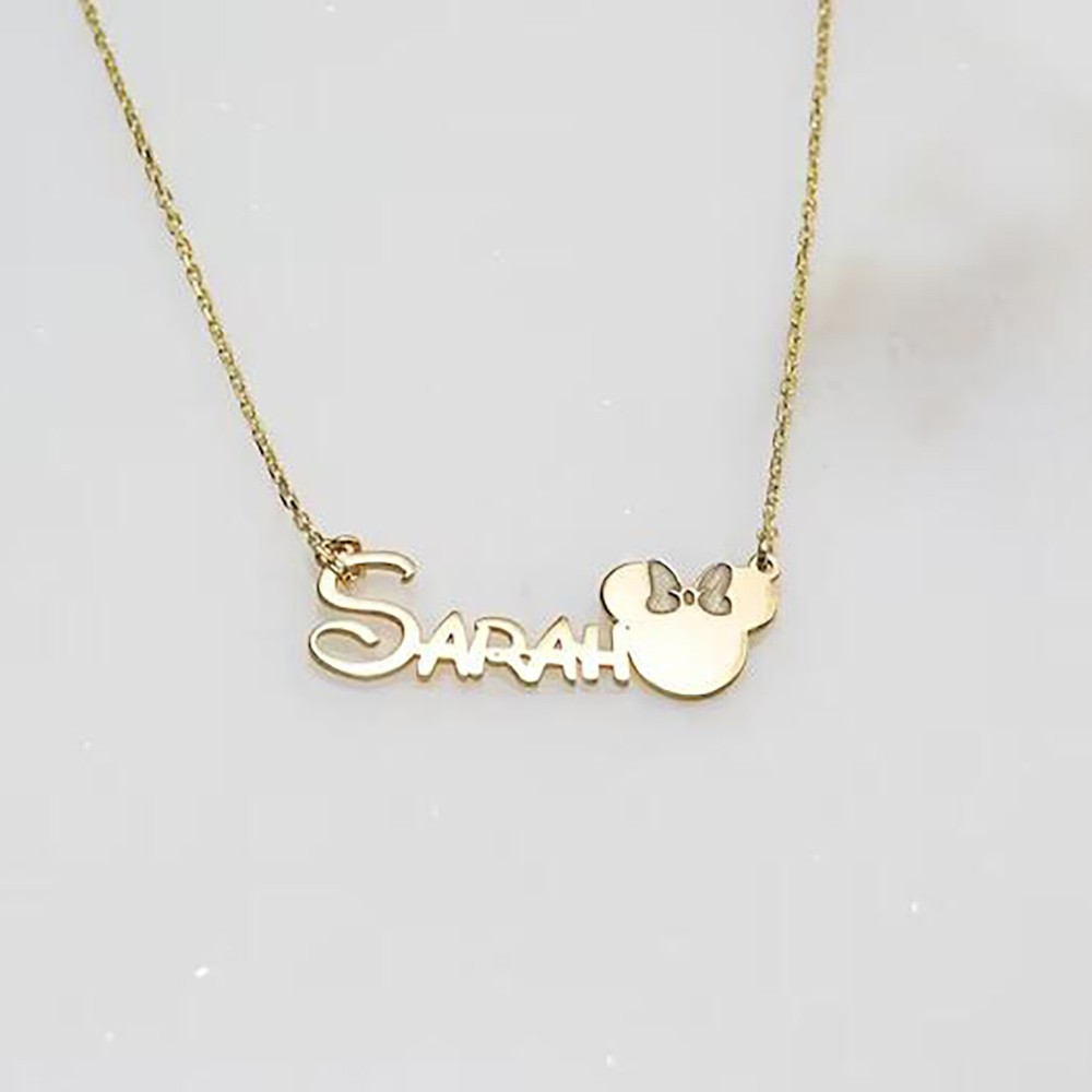 Celebrate your love for Minnie with our custom Minnie Name Necklace! This enchanting piece combines the whimsical charm of Minnie Mouse with a personalized touch, making it a perfect accessory for fans of all ages.